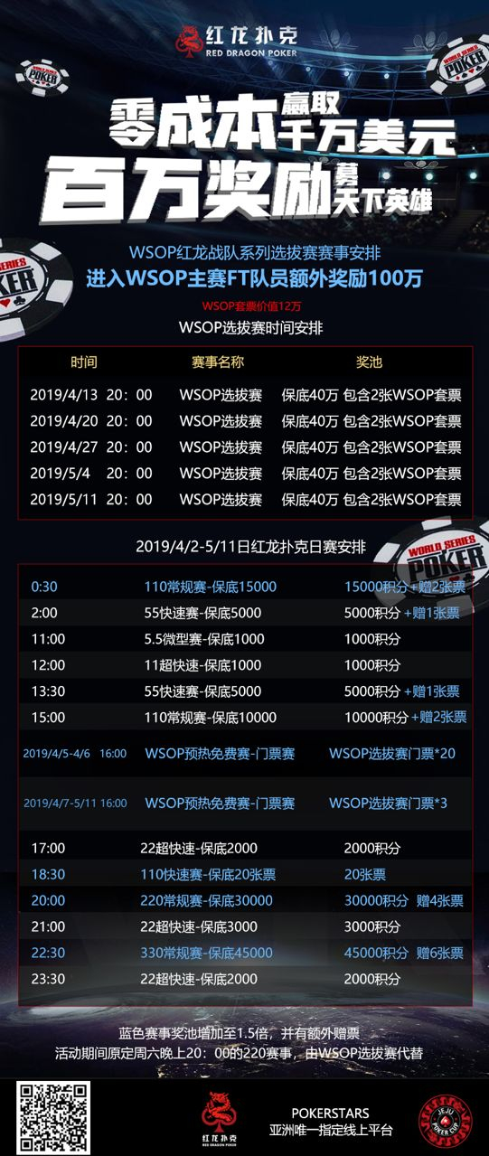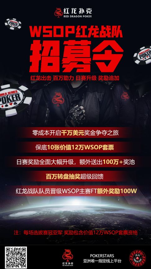 通过红龙APP获得WSOP套票资格,并且贴红龙战队的队标参赛最终晋级FT的选手将获得红龙扑克100万专项基金。