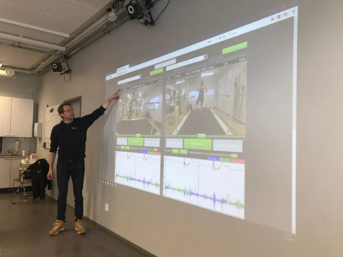 欧赫多宁介绍,这个实验室在世界范围内都是顶尖水平,只有挪威和瑞典有相似功能的设备:“能测量运动员的生理运动科研指标,并进行科研参数分析。比如手杖接触时长、离地时长、最大耗氧等指标。而它最先进的地方则是能在线分析并及时反馈,甚至能立即将分析结果传输到其他地方供教练参考。”据悉,整个实验室耗资50万欧元,分析地板造价20万欧,摄像头每个的价格为1.5万欧。整个实验室的硬件设备价格并不算高,但欧赫多宁强调:“这个实验室最为关键的要素还是人,是分析能力,得到数据后需要能读懂并且做出正确分析。”