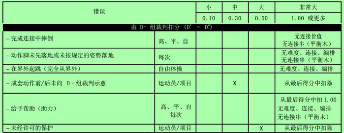(三)由D-组裁判执行并报告高级裁判组,或由高级裁判组执行的扣分