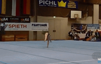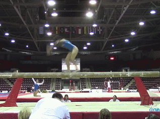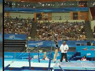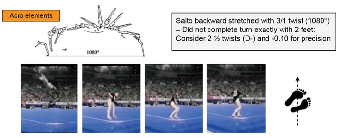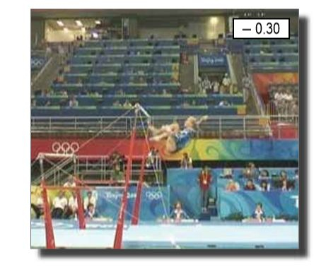 平衡木:选手做前团,落木时手向前碰到了木(但没有支撑或是抓住木头), 扣落木分(落木时的身体位置、步子等);