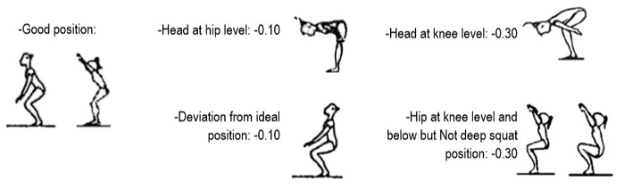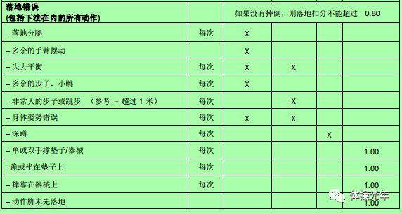 -技巧动作落地身体姿势的扣分,扣0.1或0.3,具体标准如下图: