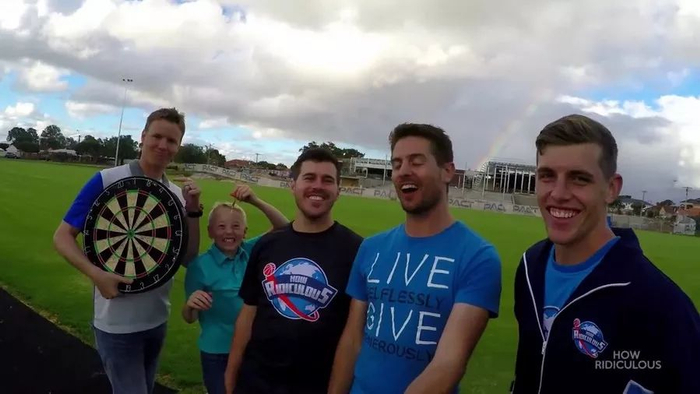 譬如在花式技巧领域,澳大利亚的同类团队“How Ridiculous”或许比Dude Perfect更上一层楼,曾试过从200米高楼上投篮命中成功。但How Ridiculous的频道粉丝数“仅为”469万。这固然同样是网红级别的数字,但跟Dude Perfect差距甚远。