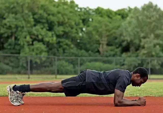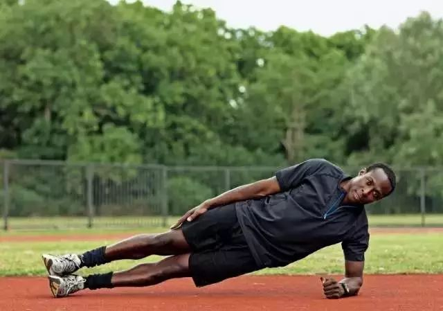 使用腹部的肌,尽可能久地保持如图所示的平板和斜平板的姿势。