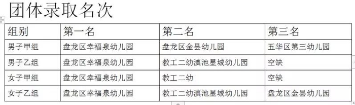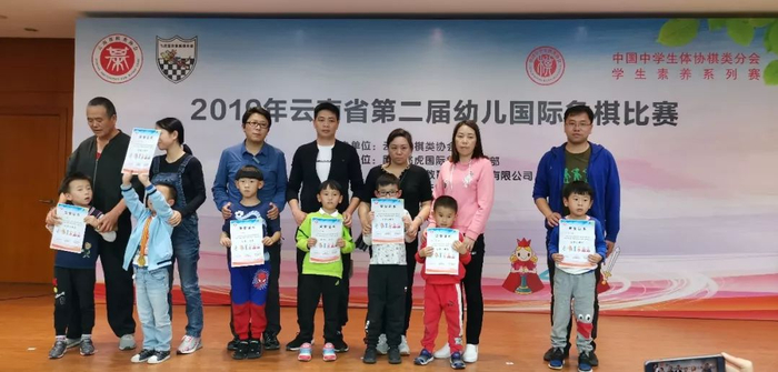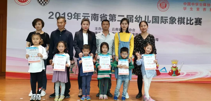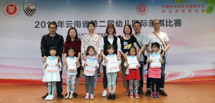 本次大赛团体奖的最大赢家是昆明市盘龙区幸福泉幼儿园,四个组别团体第一全被它们包揽!该园是国家级国际象棋特色学校,多年来坚持把国际象棋作为园本课程推广执行,此次获奖实至名归!
