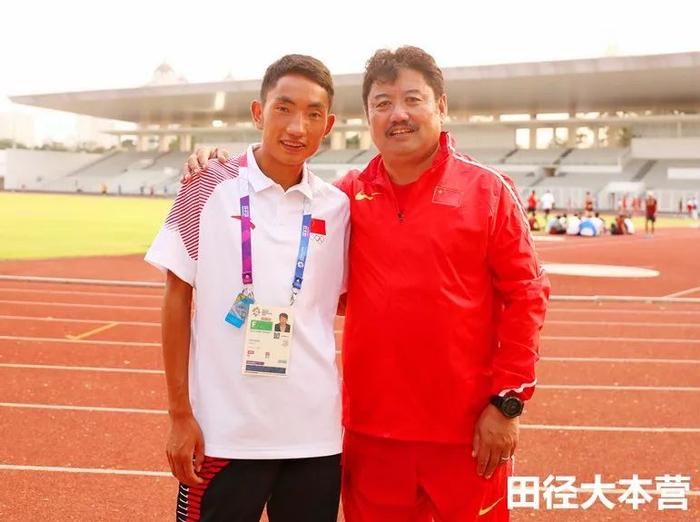 下图为亚运会上多布杰与恩师合影,田兵拍摄——