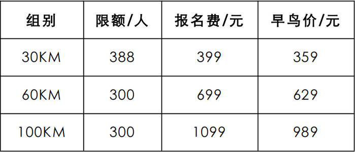 备注:男子720分/含、女子580分/含将由组委会统一安排住宿(100KM组选手两晚,30KM、60KM组选手一晚。)