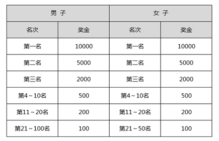 (一)半程马拉松名次奖:按净计时成绩,分别获得奖金(人民币,单位:元):