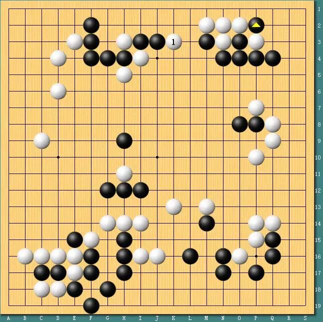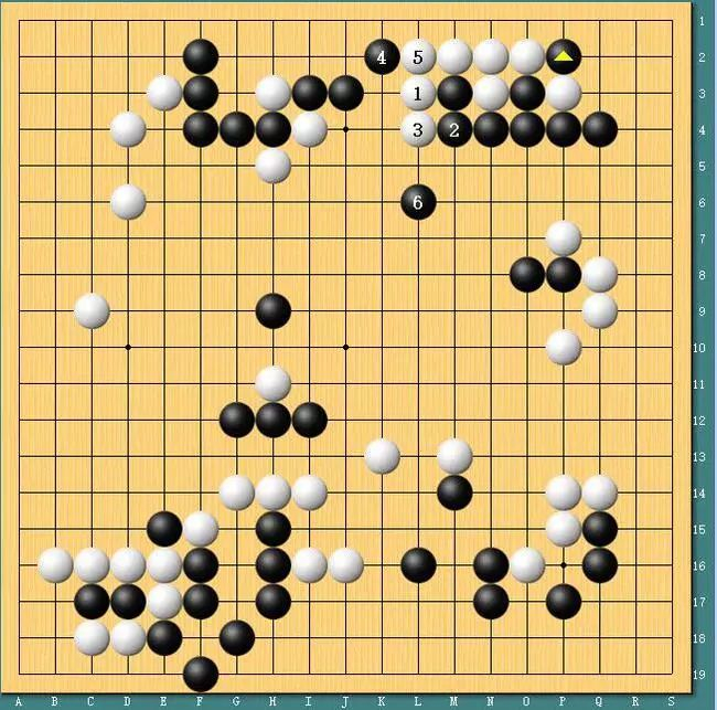 图6:实战黑棋只好先在1位拐打,虽然左边走好了,但右边被白棋吃掉一子,比图3多做出一只眼来,局部已经基本依旧活了。黑棋实地的大北营被白棋这么轻松破掉,胜率自然也所剩无几了。本局最终柯洁中盘胜出。