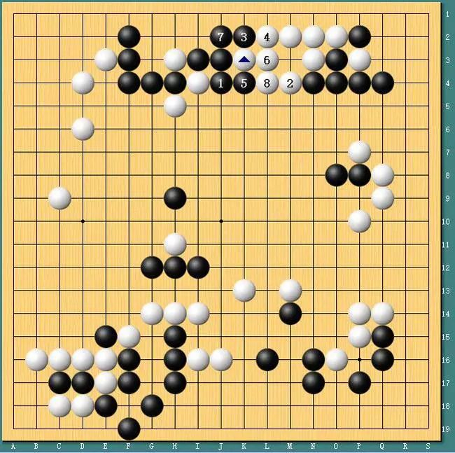 图2:黑棋上边模样渐渐变成棋局的焦点,柯洁白1以下是局部常用的破空手段,黑8打吃,本局又迎来了一个关键时刻。