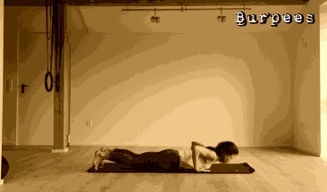 立卧撑跳(burpees)动作很简单,就是先做一个俯卧撑,然后收腿,站起来,。重复以上动作,趴下,俯卧撑一次,再站起来。组和组之间休息时间越短越好。