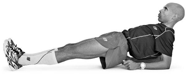 双手肘部和脚跟着地维持身体平衡,肚脐朝上。从肩部到双脚成一条直线,同时下巴朝胸部方向内收。保持这一姿势30秒不变,并且慢慢地将这段时间延长到1分钟。为了增加运动的挑战性,可以将一条腿稍微抬离地面。