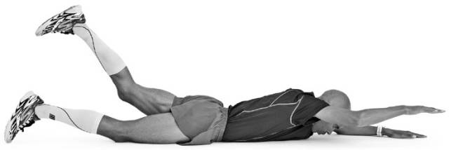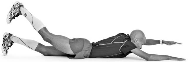 俯卧,用肚皮支撑身体,双臂在体前伸直。同时将右臂和左腿尽可能地抬高,然后再放下。用左臂和右腿重复以上动作。身体两侧各做10 次。