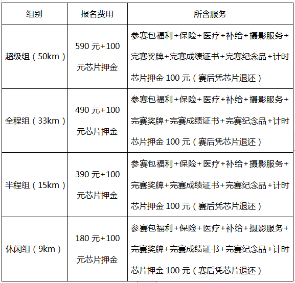 4.超级组50km/全程组33km需提供一年内半程以上(含半程21.0975km)马拉松比赛(或越野赛20km以上)完赛成绩证书,或提供半年内县级以上医院的体检报告(体验内容包括血压、心肺功能),二者有任何一种既可。