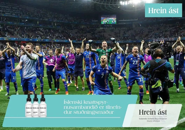 Hrein ást还被冰岛国民誉为“国家之光”,成为冰岛足球队赞助商。