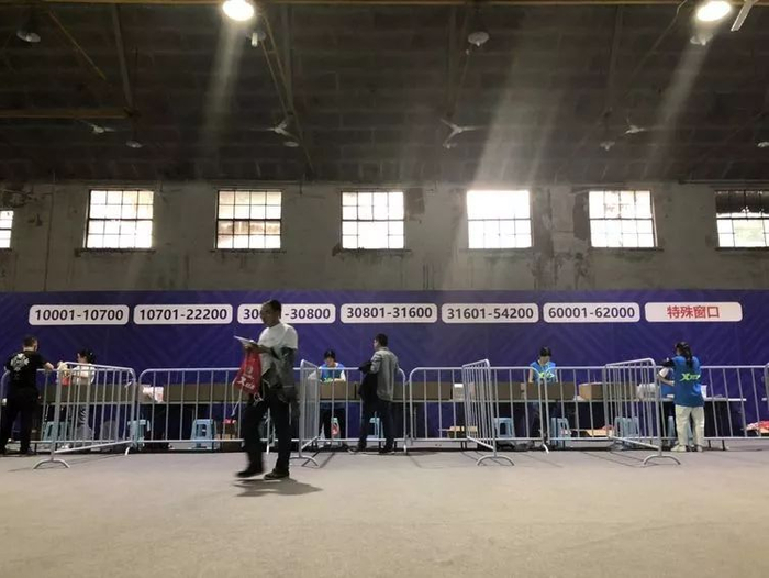 领物在市体育馆内,面积不大,但是扫描身份证换取纸质领物单,还提供先试衣服尺码再选择领取的服务,很细心。