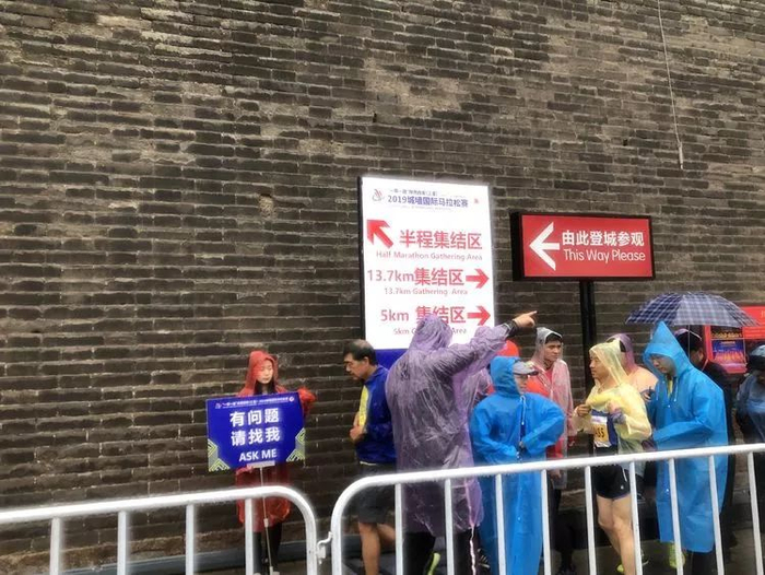 当天虽然下雨但组委会的指引很到位,也设置了志愿者指引。