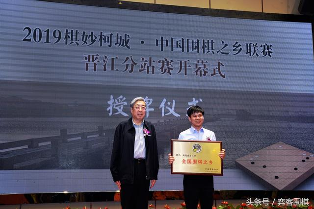 开幕式最后,中国围棋协会主席林建超向晋江市人民政府市长张文贤授牌“全国围棋之乡”称号。