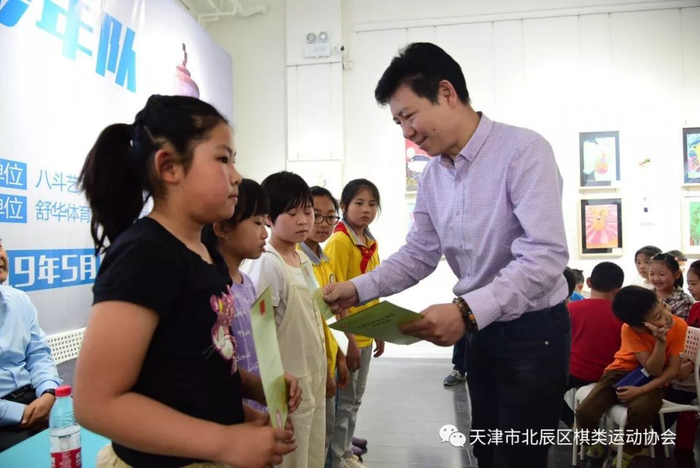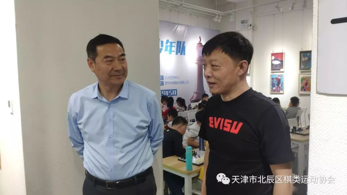 比赛中,天津市北辰区文化和旅游局(体育局)调研员魏金春在北辰区棋类协会会长谷利的陪同下,观看了小棋手们的比赛。
