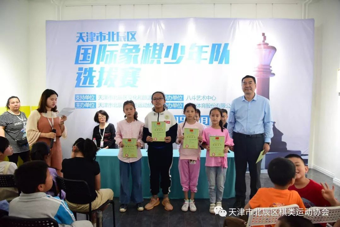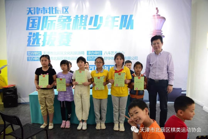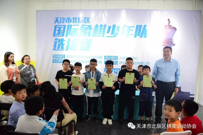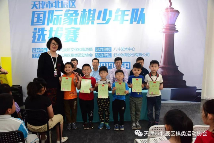 2019年5月4日,由天津市北辰区文化和旅游局(体育局)大力支持、天津市北辰区棋类运动协会主办、天津市北辰区八斗艺术培训中心承办、舒华体育股份有限公司协办的天津市北辰区国际象棋少年队选拔赛在北辰区八斗艺术培训中心圆满落幕!