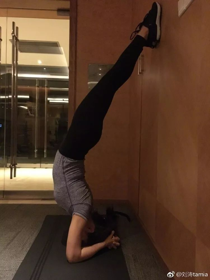 在拍戏很忙的时候,刘涛就会利用等戏的空闲时间,练练倒立和平板,她说:“觉得很放松,练一会感觉眼睛都亮了。”
