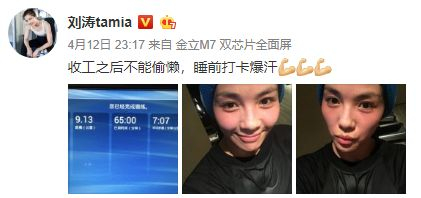 争取每天都要运动出汗!即使拍戏很累,工作到很晚也会去跑步,刘涛都要达到暴汗的状态才会满意。