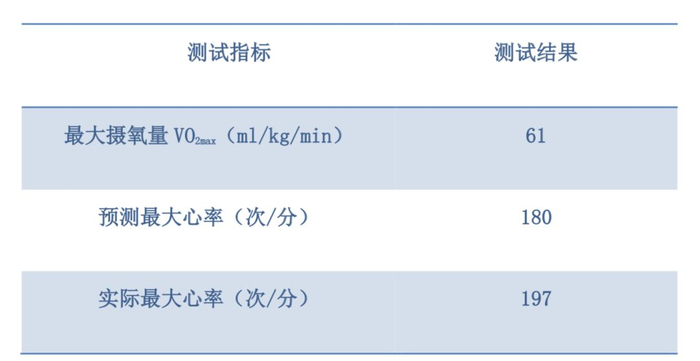 经过检测,白斌的最大摄氧量是61。