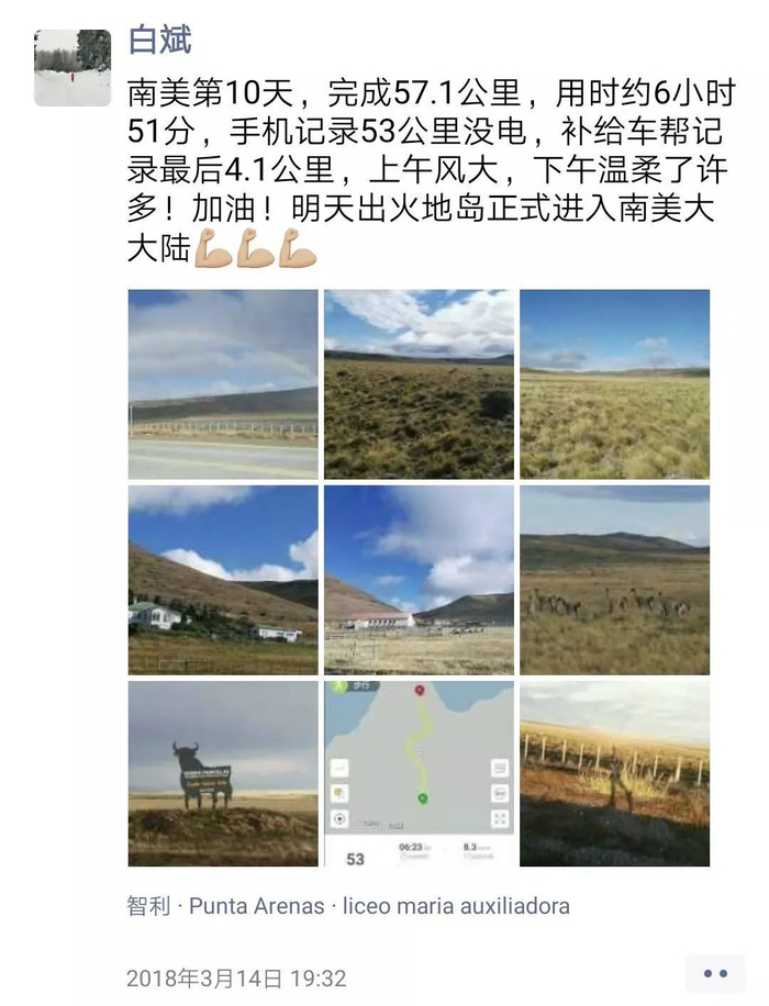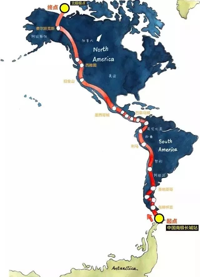 从南极到北极,2.4万公里,跨越13个国家,219个城镇,历时433天,相当于600个马拉松,平均每天55公里多。