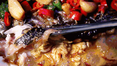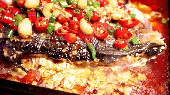 鱼身铺满剁椒和蒜,