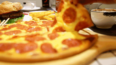 看到披萨冲我微笑