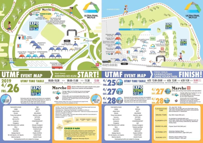有马拉松展会,而且可以购买的商品相当多,而且实用。比赛有TNF赞助,有TNF的官方比赛纪念品帐篷,也有组委会纪念品帐篷,其中一条UTMF的浮世绘风头巾比较受欢迎。"