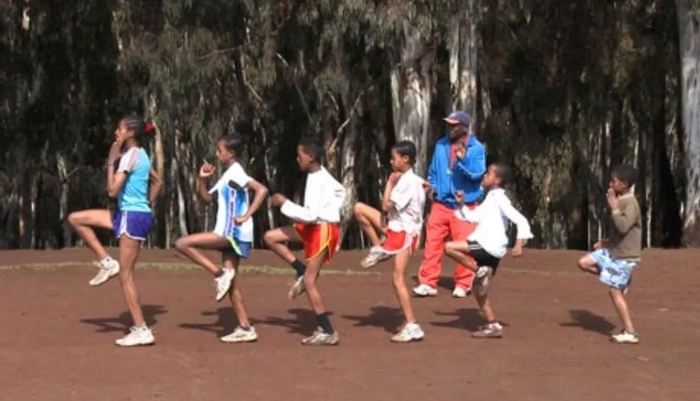 埃塞俄比亚村庄Bekoji小孩们跳舞般练习原地跑,有助弹性势能的开发