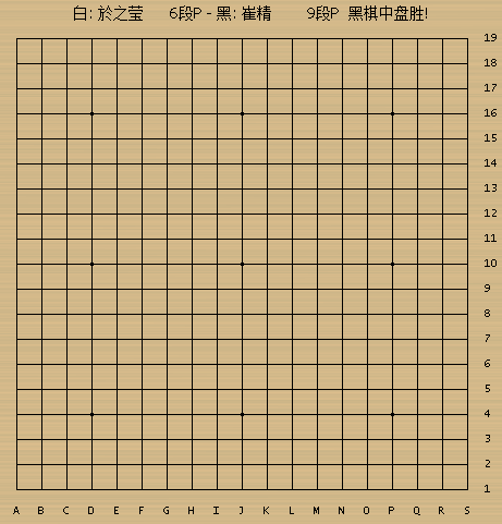 这是第八届天台山体彩杯世界女子围棋团体锦标赛第一轮的焦点对局,由韩国女子第一人崔精执黑对阵中国女子第一人於之莹,对弈于2019年5月10日。
