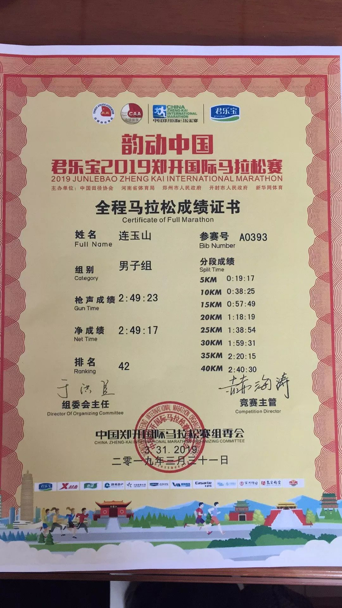 2019年郑开马拉松:2小49分;
