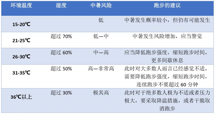 不同温度湿度运动风险