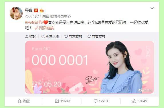 看起来,景甜的这个“喜欢就是要大声说出来”与张继科无关,而是520爱的号码牌。博文下面,众多粉丝向景甜表示甜甜的祝福和爱意:“甜甜 520 未来一直爱你”;“美是很难定义的,但对我而言,你本身就定义了美。”“520我爱你!表白我们大美甜!”