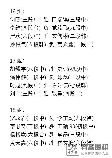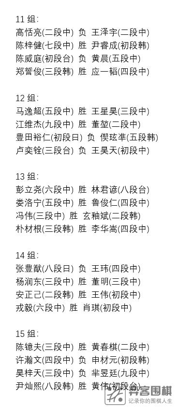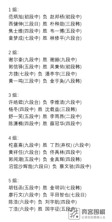 注:第3组的胜负结果有一处错误。舒一笑五段对李雨昂二段这一场,实际上是李雨昂获胜了。