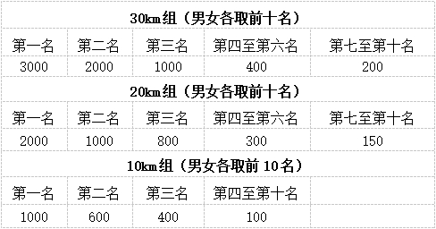 30km、20km、10km在三个项目没有获得名次所有运动员中,每组各抽取一个大奖;