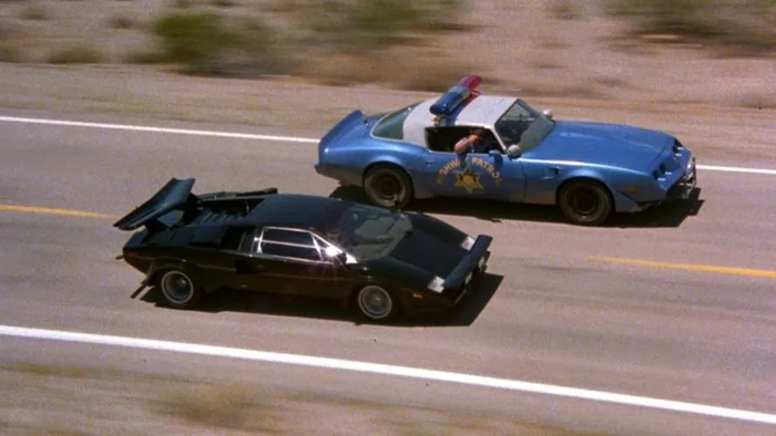 80年代是电影和电视剧明星车的爆发期,那时连电视剧里的卧底警探都开上了全新的V12 Testarossa,电影明星车自然不甘示弱—1981年的《炮弹飞车》让一台黑色的Countach成为了人们观众的焦点。