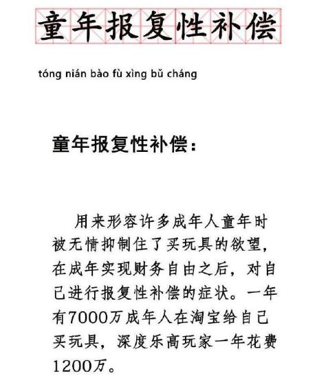 我依然记得我小时候奶奶常跟我说一句话:你爸爸这么痛你,给你买玩具是因为他小的时候我没有给他买过什么玩具。你要好好珍惜啊!