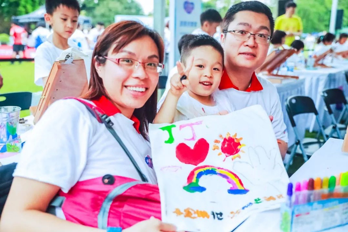 而赛事的一大亮点在于赛事从始至终都融入了涂鸦、色彩等元素,这也迎合了赛事“跑出多彩童年”的主题。此外,赛事现场还设置了长达10米的“城市画布”,家长和孩子共同在画布上进行涂鸦填色,共同发挥无限的想象力和创造力,这不仅对于亲子关系发展起到至关重要的作用,对于孩子未来成长也大有裨益。