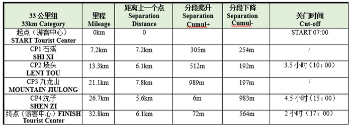 3)33km (actual distance:33km,a cumulative elevation gain of 1848 meters)