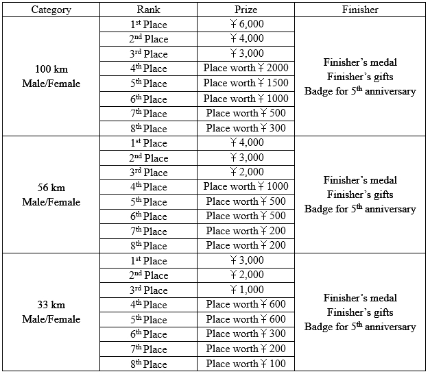 1)100km (actual distance:101km,a cumulative elevation gain of 6557 meters)