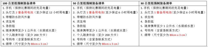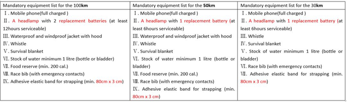 All the participants of the 100km and the 50km have to accept mandatory equipment check when they collect the race pack. During the race, mandatory equipment check also happens at the check points and we randomly check the mandatory equipment at the checkpoints. The weather is changeable in Wugong Mountain, which has a high drop. We strongly recommend that you carry all the mandatory equipments during the race to ensure your safety.