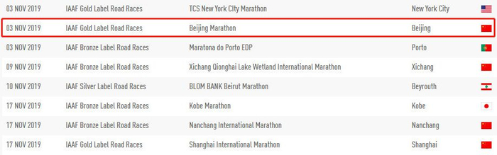 而近日,国际田联官网更新了一版赛事日历,其中备受关注的2019北京马拉松被标注为11月3日开跑。但是,据了解今年北马的开赛日期并未最终确定,具体开赛日期可能还会有出入。