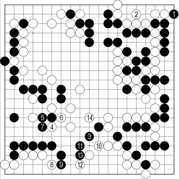 左边是预想进行,黑10连打渡回,且保留角上二路打的大官子。
