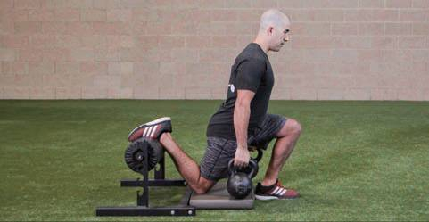 该测试相对简单。请将你的后脚放在常规的训练板凳或专门设计的支架上,在地板上放一块Airex泡沫垫,用于避免膝盖与地面反复接触。选择在5RM范围内的负载,然后尽可能多次地完成动作,直到出现技术性失败(即,直到不能再保持完美的技术动作)。