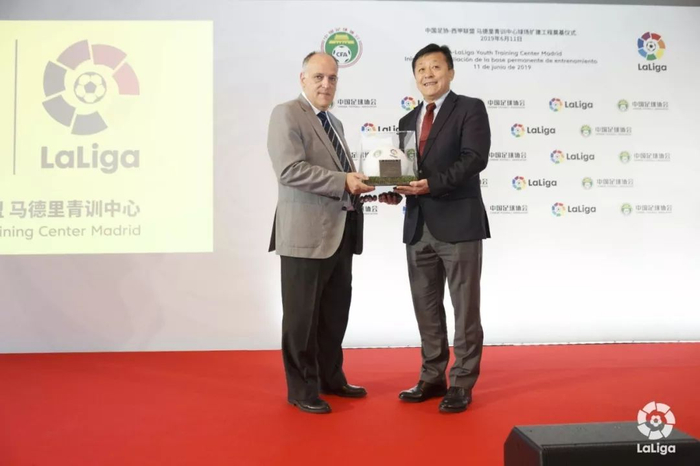6月12日消息,中国足协和西甲在马德里市圣多明戈区举行马德里青训中心球场扩建工程奠基仪式,国家体育总局副局长、中国足协党委书记杜兆才、西甲主席哈维尔·特巴斯、驻西班牙使馆代表出席了奠基仪式。