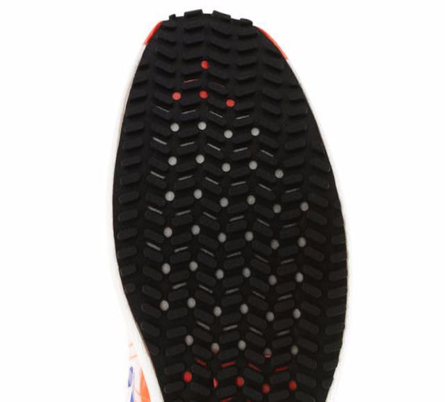 对于这样轻便的鞋子,整个鞋底覆盖有穿孔的橡胶网,小块颗粒物提供摩擦和牵引力。鞋跟的后部和外部边缘具有更厚的涂层,增强了每次脚部撞击地面时磨损区域的耐久性。