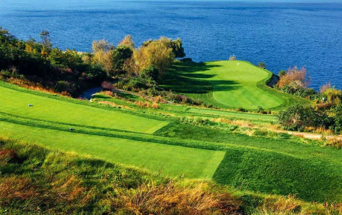 作为松石球场的签名洞,这个总长仅138码的短三杆洞可以挑战你心灵最深处的恐惧感。7号洞建在一处废置不用的采石场之上,开球必须飞跃一大片水障碍方可抵达果岭,而果岭的正后方就是整片的矿石岩壁,压迫感十足。打短了过不了水,打大了又有可能会直击岩壁落入石缝或是反弹到不一定什么地方去,对球员击球精准性和心理素质要求极高。