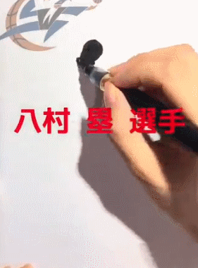 八村垒被第9顺位选中后,有日本球迷在社交网站上传了一段视频,用“八村垒”这三个字作的一幅画,画出了他投篮时的神韵。